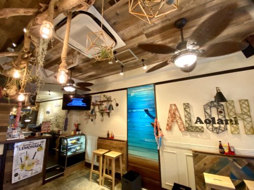 アーケード内から一歩お店へ入れば、まるでハワイへ旅行に来たような気分に。