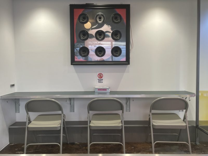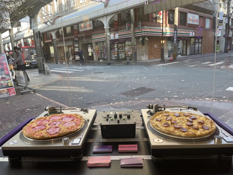 店の中央には、ピザをレコードにした