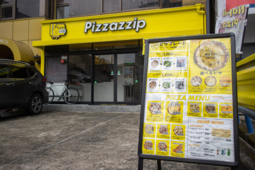 ピザと英語で「素早い」「元気」という意味を持つZIPを組み合わせ、Pizzazzipと名付けられたそう。元気の出る黄色いお店の外観もそういうことか〜と納得。