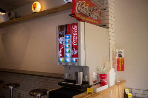 注文を済ませるとコップを渡されますので、こちらのドリンクバーから好きなドリンクを注ぐことができます。