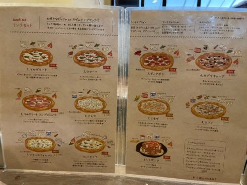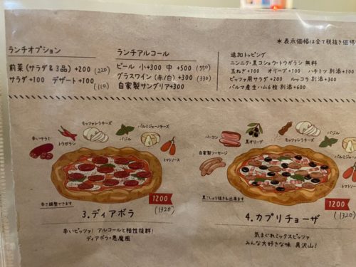 自家製ソーセージやバジルなど、トッピングされている具材のイラスト付きで、とってもかわいいメニュー。