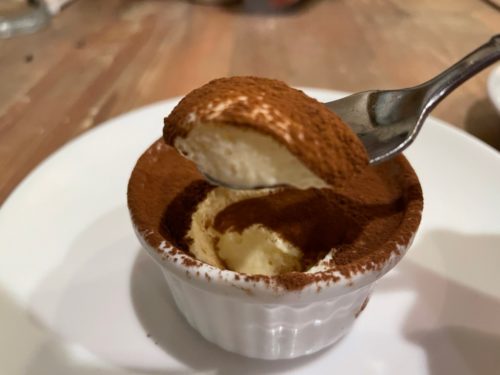 食後のお楽しみのデザートは、ティラミス・パンナコッタ・バニラアイスの3種から選ぶことができたので、大好きなティラミスにしてみました。