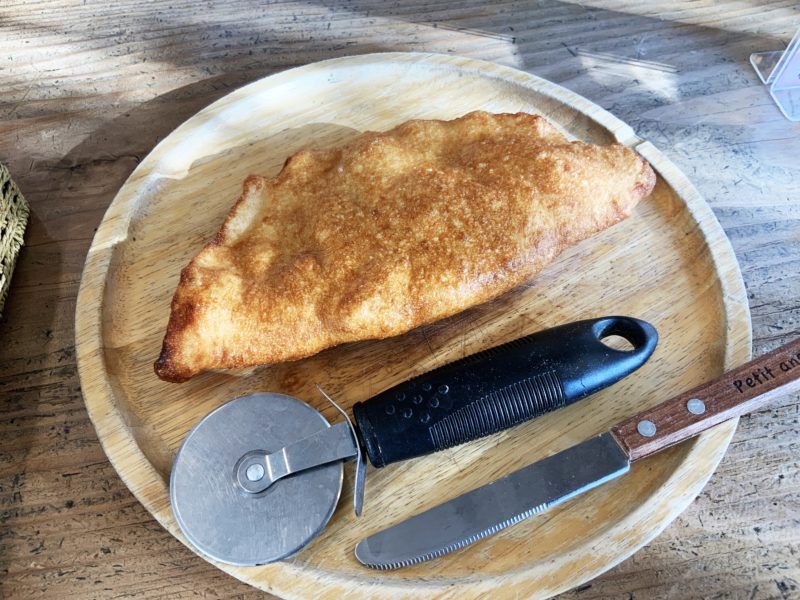 ピザ生地に具材をくるんで揚げたやつです。めちゃくちゃ美味しいんですけど、熊本には意外と揚げピザのお店って少ないんですよね。