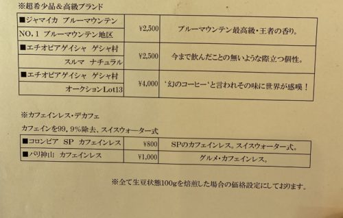 コーヒー豆のメニューを見せてもらうと、そこには目を疑う光景が・・・