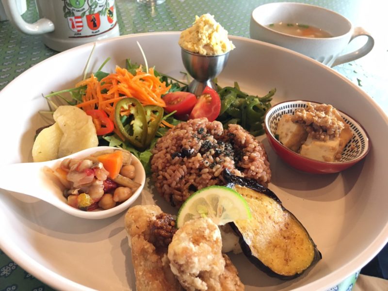 これに、すいとん入りの具沢山味噌汁や、もっちりと柔らかい酵素玄米までついて、本当に豪華なランチプレートでした!