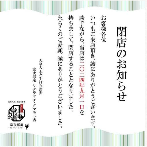 天草大王と手打ち蕎麦 常次郎庵は、2024年9月1日で閉店になったので、そのあとに入るのがポムの樹ってことです。