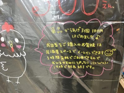 今回唐揚げ弁当をご購入の方は、このルールとは別に一時間スペースを使ってもいいよ!ということのようです。