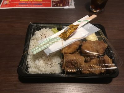 唐揚げ弁当が運ばれてきました!