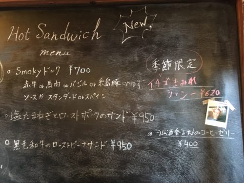 1階は厨房とカウンターのみで、黒板に種類豊富なドリンクや、ホットサンドのメニューが書かれています。