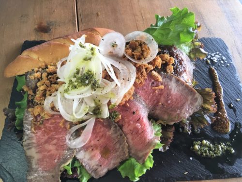 こちらが黒毛和牛ローストビーフサンド。もはや、サンドというよりハサマンド!