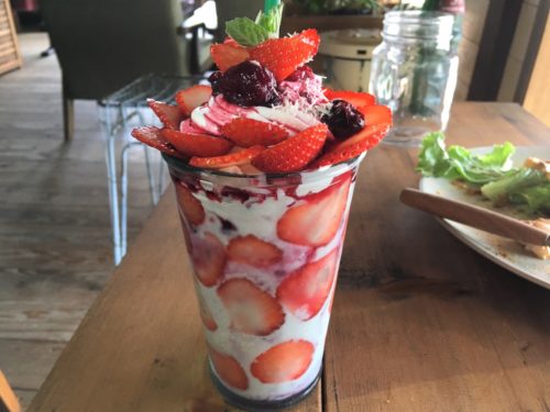 そしてこちらが、いちごまみれラッシー。どこから見てもいちごだらけで、飲みごたえというより、食べごたえ十分!ベリーのソースとヨーグルト、そしてフレッシュないちごの甘酸っぱさが溶け合って美味でした。6月まではいちごがありましたが、今後は季節のフルーツに変わるかもしれないとのこと。