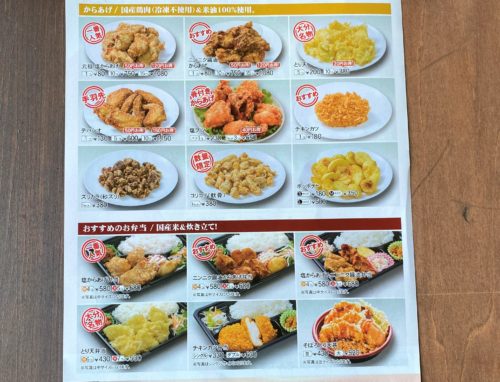 単品のからあげだけでなく、とり天やチキンカツ・ポテト等まで豊富なメニューです。