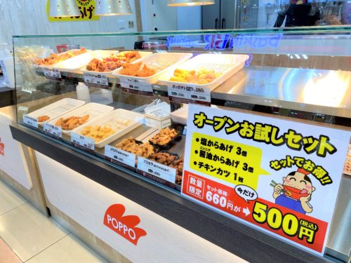 「ポッポおじさんの大分からあげ」は1階入り口側、食品館向かいにありました。