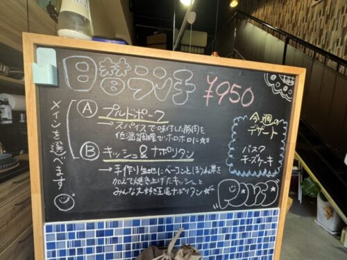 この日の日替わりランチは、プルドポークもしくはキッシュ&ナポリタン。