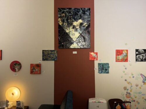抽象画メインのアートから地域の方々の作品まで、幅広く展示されていますよ。しかも購入もOK!