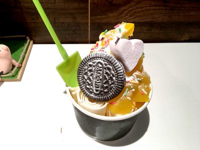 トッピングされ、おしゃれなロールアイスの姿に!!