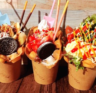 定番のエッグワッフルもでは、お食事系のワッフルも登場していますので、お店でランチ代わりに食事することもできますよ!