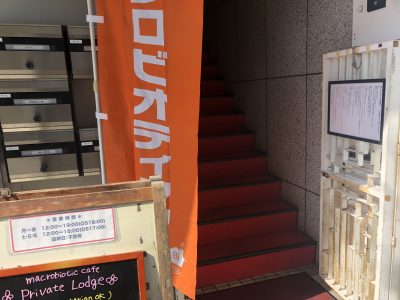 熊本電鉄藤崎宮駅より徒歩2分と駅近にあります。マクロビオティックというオレンジ色の旗が目印です。
