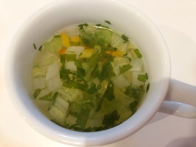 最初に運ばれてきたスープは野菜の甘みが口に広がり、満足感があります。