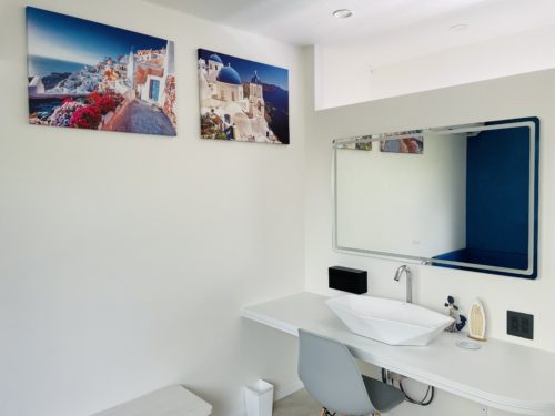 テーマはエーゲ海。青が美しい作りとなっております。飛行機にすら乗った事の無い私にはエーゲ海は夢のまた夢…。こちらのPrivate Spa Kurage(プライベートスパクラゲ)ではお部屋の一つ一つにエーゲ海島々の名前が付けられています。