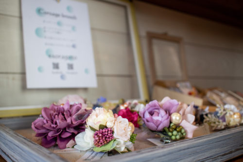 淡い色のお花のアクセサリー、温かい雰囲気の店内にピッタリです。
