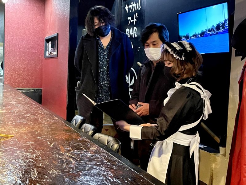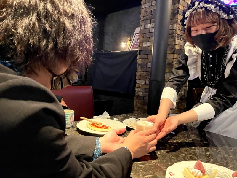 なんか麻薬取引にでも来たかのような出で立ちの二人ですが、初メイドカフェで緊張しているだけです。
