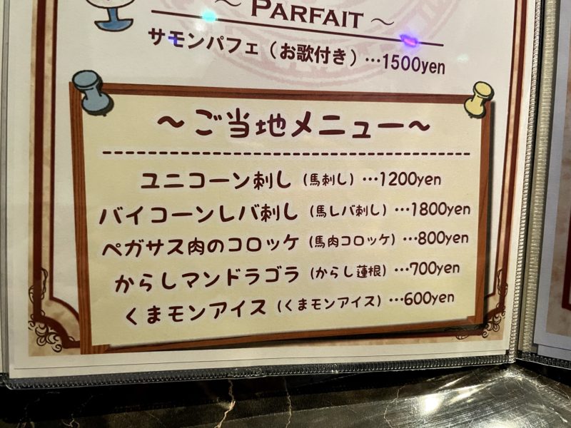 席に案内され、いざ注文!メニューを見るとこれもツッコミどころ満載。