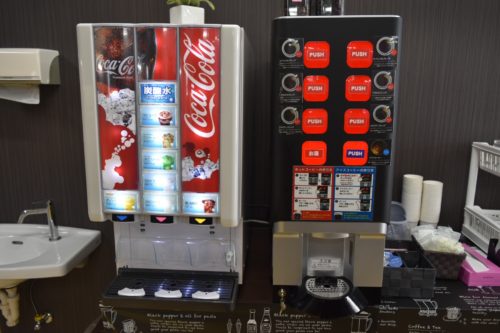 ソフトドリンクも充実。3種類のコーヒーは、ホットとアイスどちらもセルフサービスです。