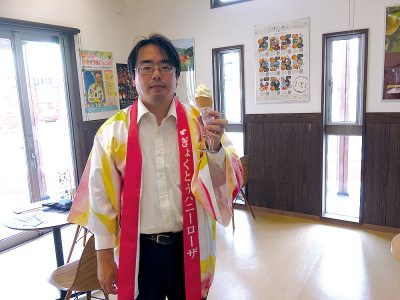 玉東町の「ハニーローザ」大使を10分だけ襲名しました! ソフトクリームオススメです!