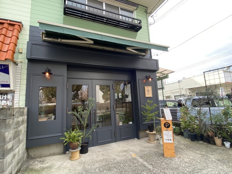 看板もシンプルで植物がたくさん育てられていて花屋さんか美容室かと思うほどオシャレな外観。