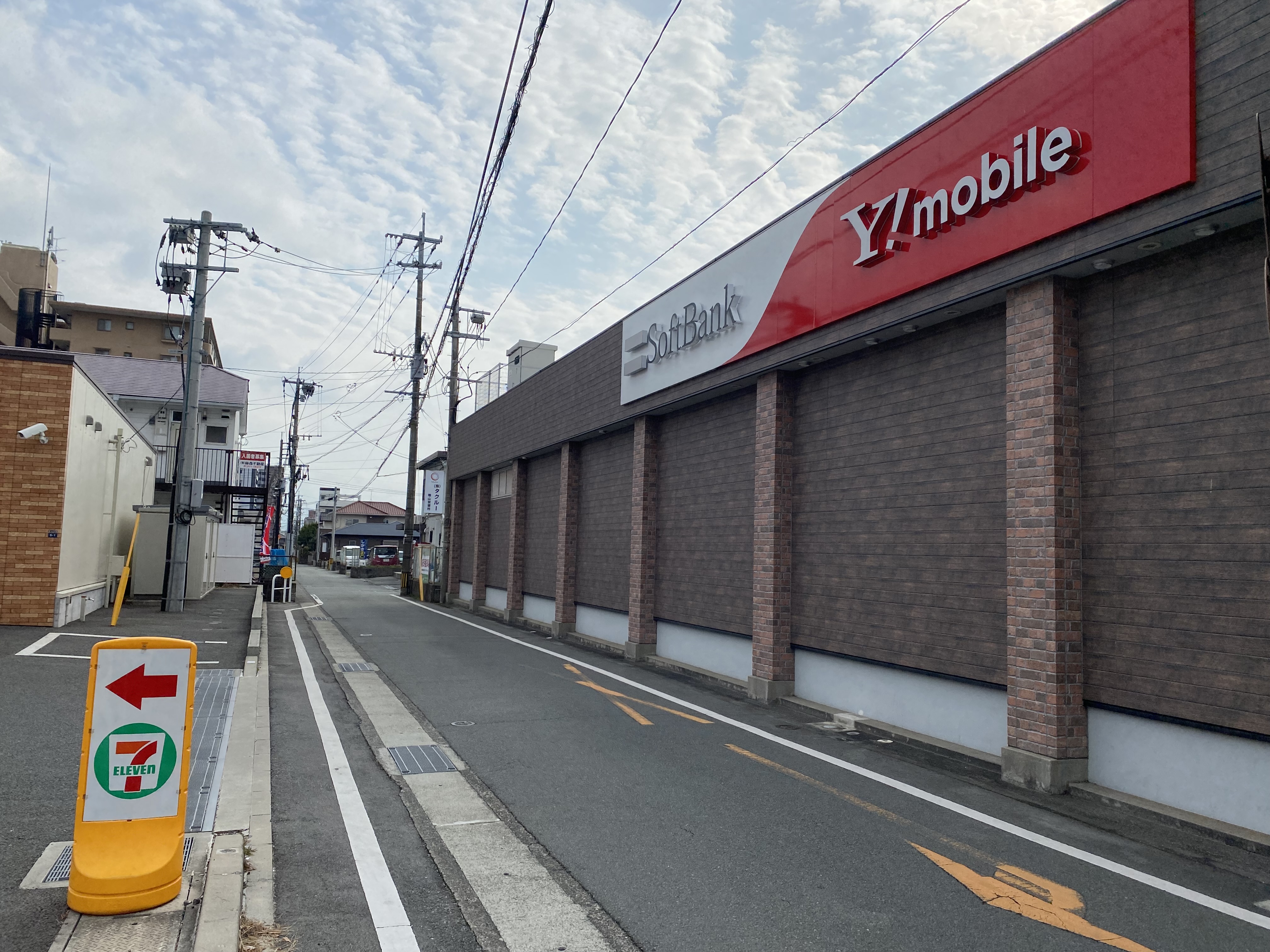 県立大通りから国体道路を左折してすぐの「セブンイレブン」さんと「ソフトバンク」さんの間の道を左折します。