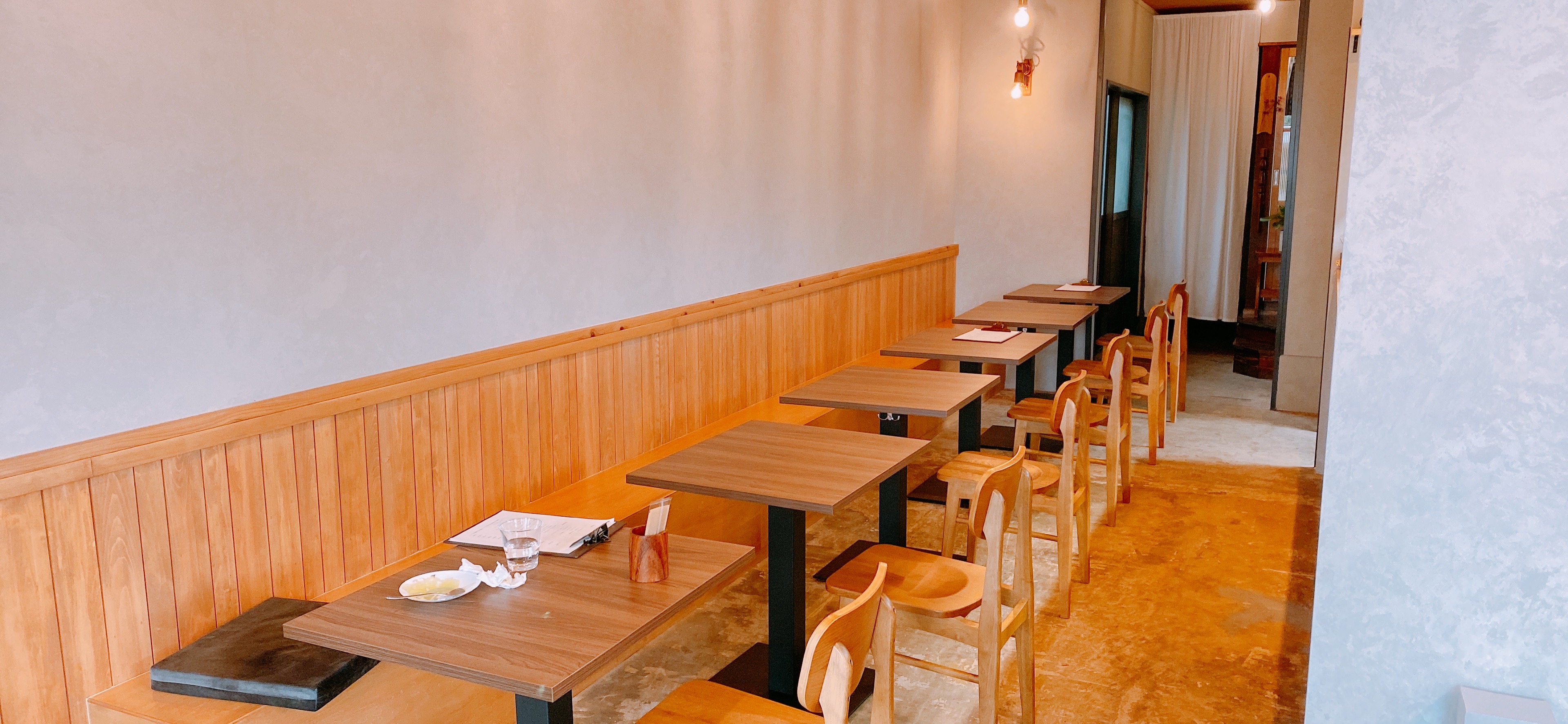 店内には2人用のテーブル席が6席。テーブルをくっつけて使うこともできます。