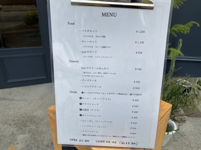入り口の看板に「puu」しか見えませんが、小さく「cafe and launch」と書いてあります。
