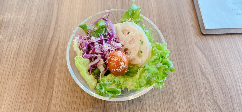 まずはサラダ。アンチョビドレッシングとチーズがかかっていて、さっぱりといただけます。