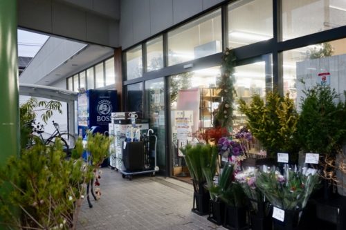入口は花屋さんっぽい。このお花は隣接店「ふらわーフラワープロデュース凛花」さんのものだそうで、Q-FLAさんのじゃないのかぁ。