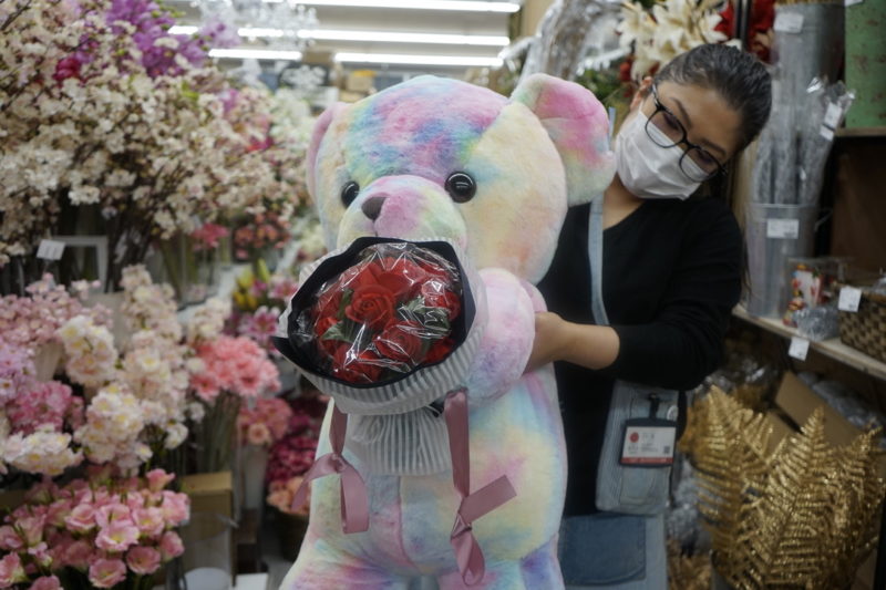 第2位:巨大ぬいぐるみ。巨大クマさんにお花を添えて。