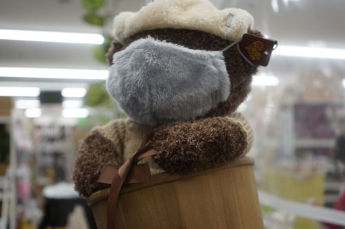 クマさんのような、ふわふわ素材で作ったマスクでした。