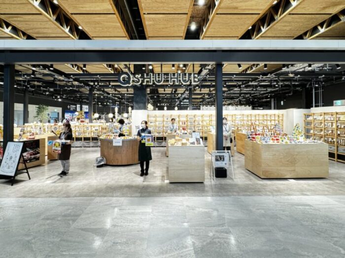 1日9,000人近くが利用する阿蘇くまもと空港。そんな空の玄関口(出口)に、熊本のお土産パビリオンというべきQSHU HUB(キューシューハブ)はあります。