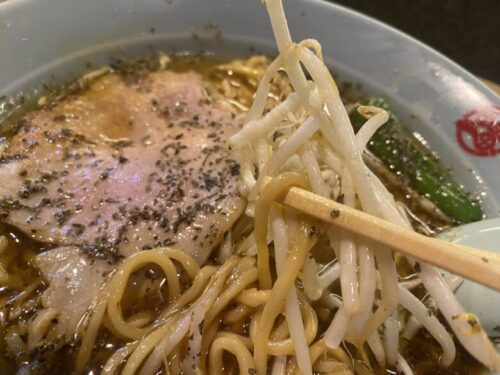 麺は富喜製麺研究所の特性麺を使用していて、スープがよく絡むもちもちしっかりした麺。細さも丁度良い。(ちなみに店長さんが元々富喜製麺研究所で働かれていたそうです)