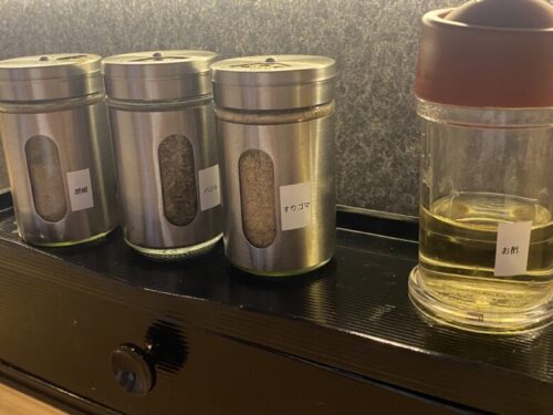 味変に「コショウ」「すりゴマ」「バジル」「お酢」がありましたが、この「すりゴマ」や「バジル」がまたとても合って、沢山かけても美味しかったです。