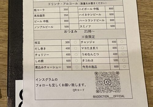 ランチタイムは11時30分~15時ですが夜は21時~2時(金土は5時)まで営業していて、夜だけ頼めるおつまみメニューもありました。