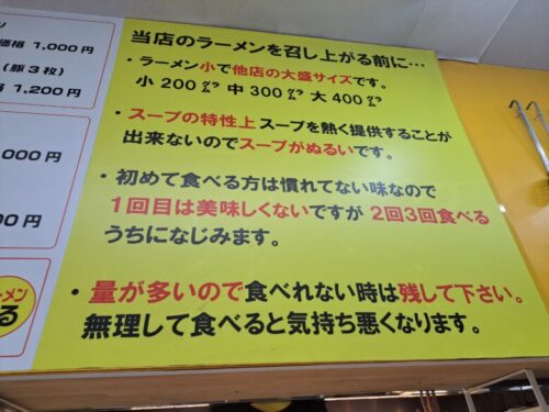 そしてメニューの横には注意事項が…