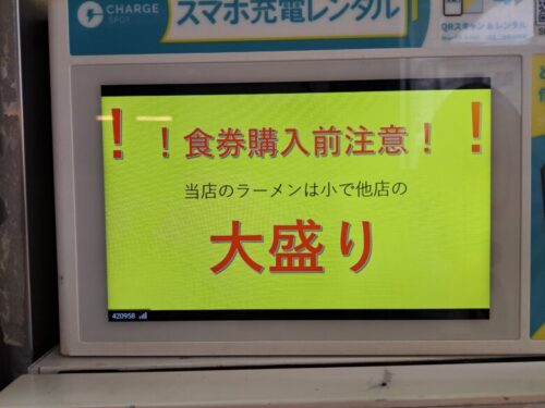 麺は水分を吸うと1.5倍になるので、その点も考えながら食券を購入してください。