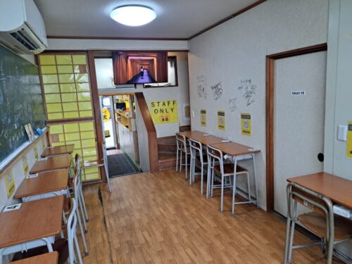 黒板には落書きがあり、なんだか学生時代を思い出して楽しくなりますね。