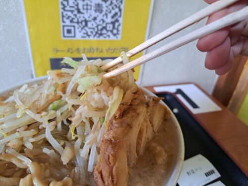 麺だけ食べても、野菜と食べても、豚チャーシューと食べても、どの食べ方でも「今めっちゃ二郎系ラーメン食べてる!」という満足感を味わえますよ。