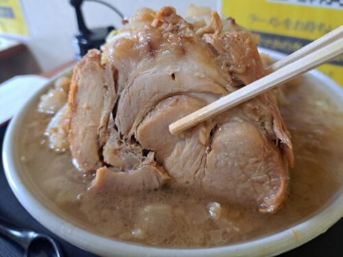 豚ラーメンにするとそれが3枚になるので、豚チャーシューだけでも300g近くなります。