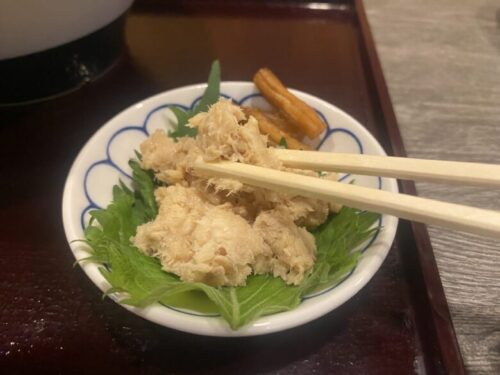 魚本来の旨味と調味料の旨味でこれだけでお酒が延々と飲めてしまう味ですが、これとご飯をスープに入れると…