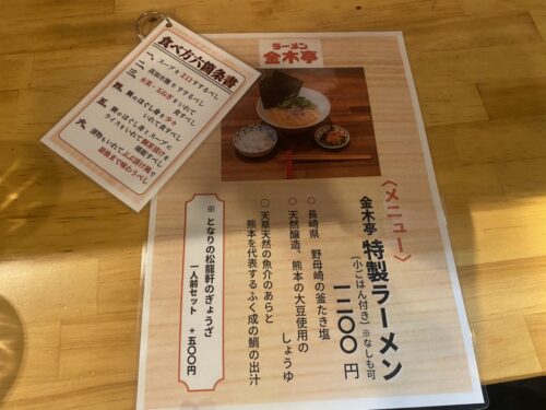 メニューは金木亭特製ラーメン(小ごはん付き※なしも可)1,200円のみという潔さ。