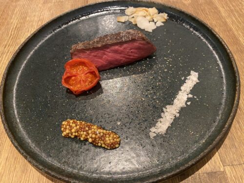 お腹がいっぱいになって冬眠している冬ごもり鹿を使った鹿ロースのステーキ