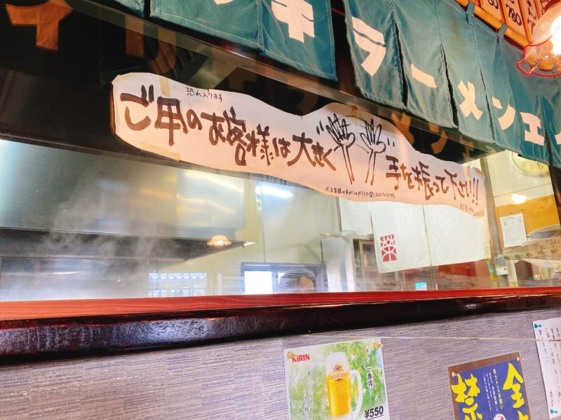 注文が決まったら、この窓に向かって手を大きく振ってください!店員さんが来てくれますよ。